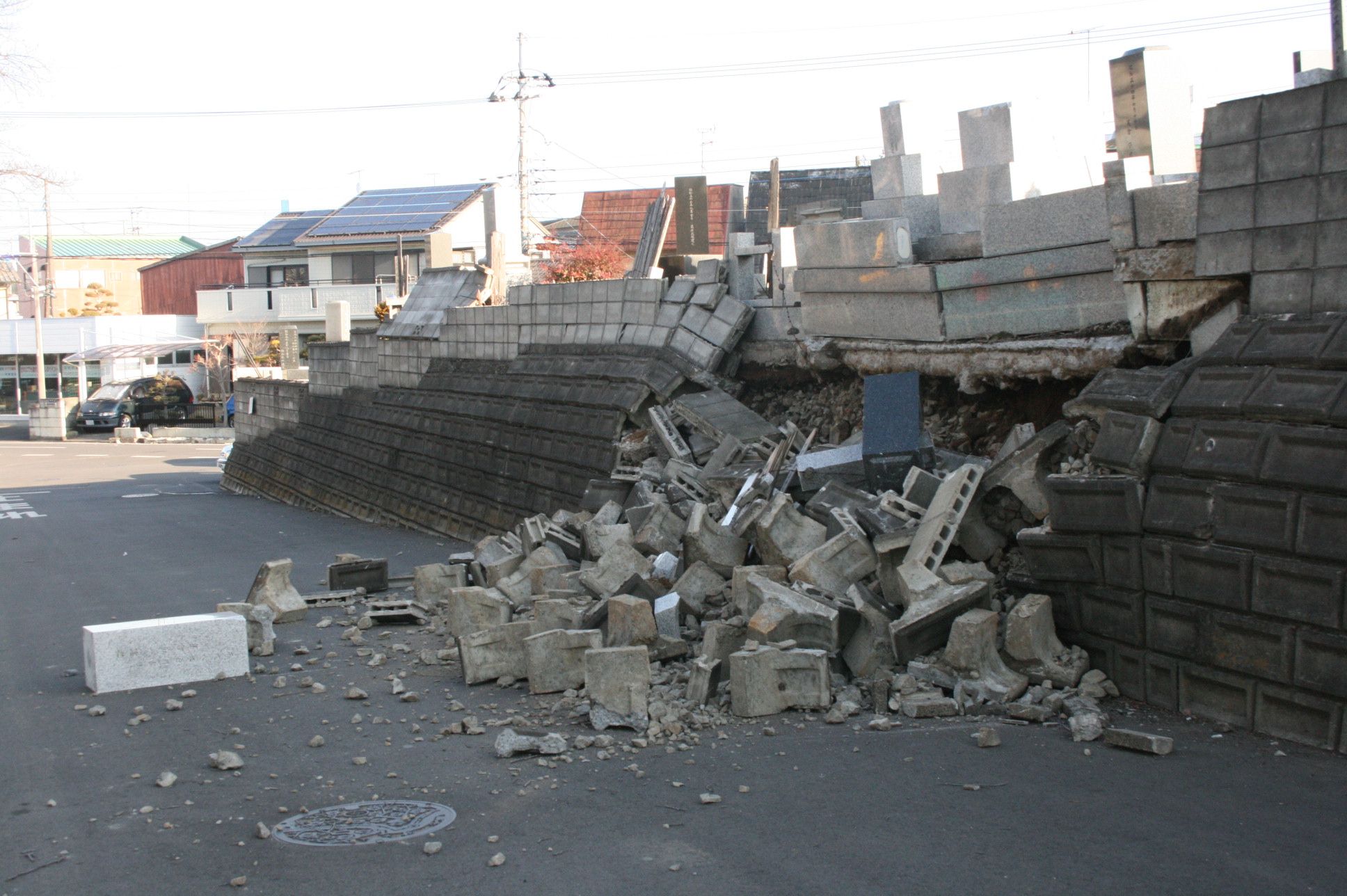 東北地方の大被害で茨城や千葉は被災地と思われていない傾向がありますが、やはりあちこちで家も塀も崩れていました。道路も線路もボコボコグニャグニャ。